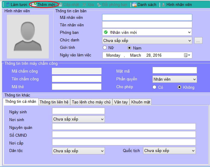 -Sau khi chọn Thêm hộp thoại thêm nhân viên sẽ hiện ra.